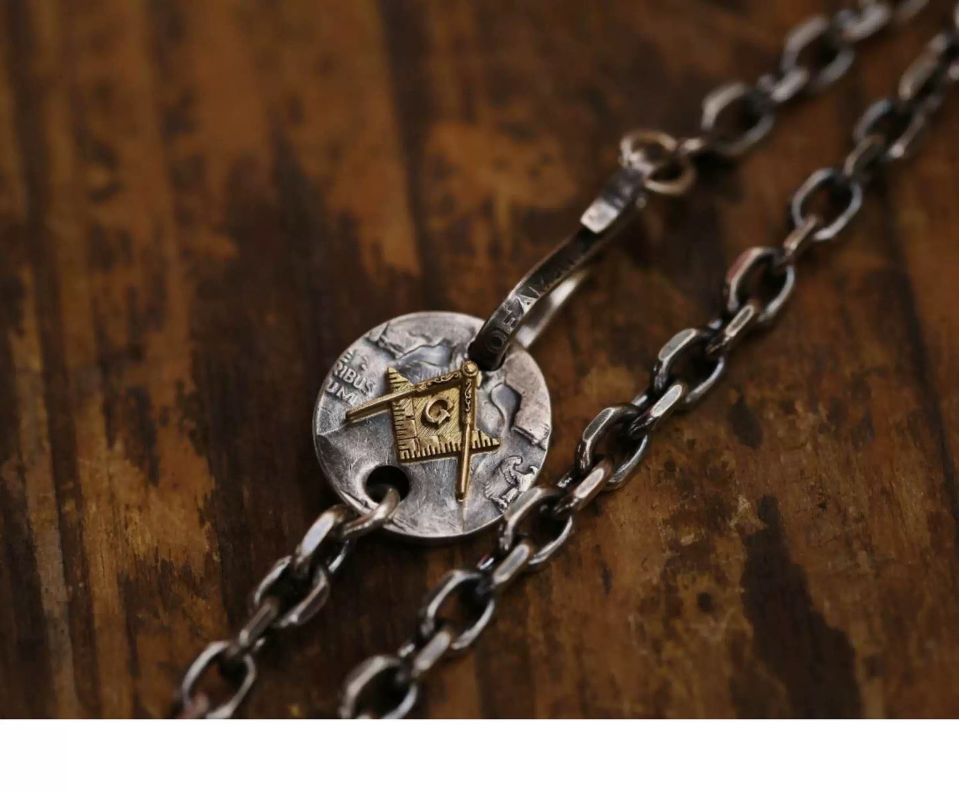 Franklin Half Dollar Silver Coin Masonic Necklace (Chain included)