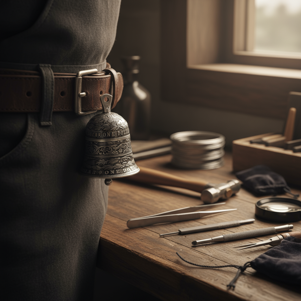 Each bell preserves the coin’s authentic engravings — Lady Liberty, the eagle, and historic mint marks — reimagined into a wearable relic of freedom and artistry. The subtle aging and hand-finished patina make every piece one of a kind.